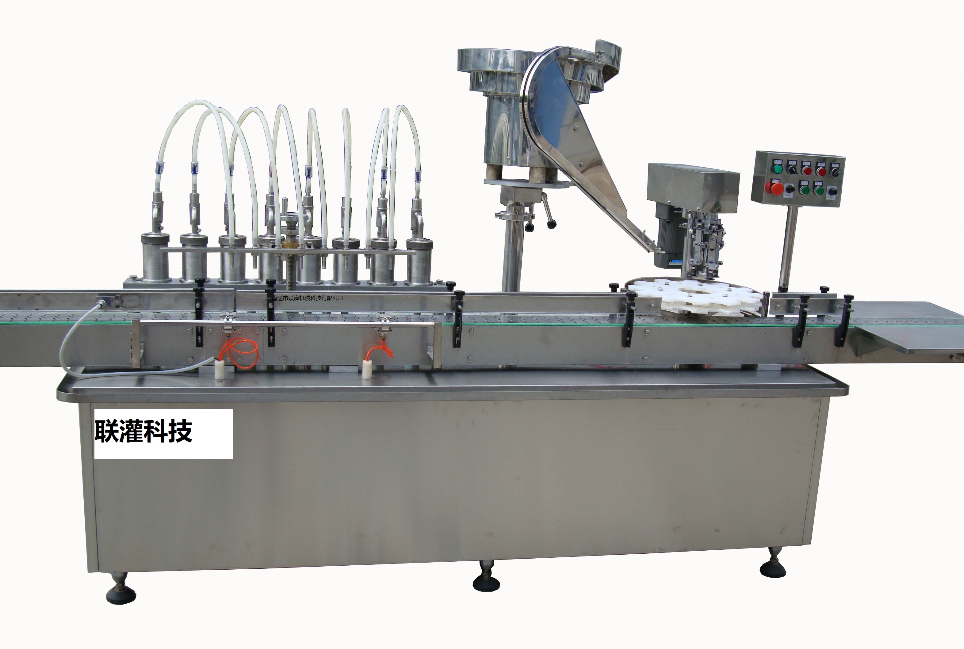 (五).液体灌装机与其它设备隔绝,灌装机的润滑部分与灌装物料部分应防止交叉污染,输送带的润滑要用的肥皂水或润滑油。